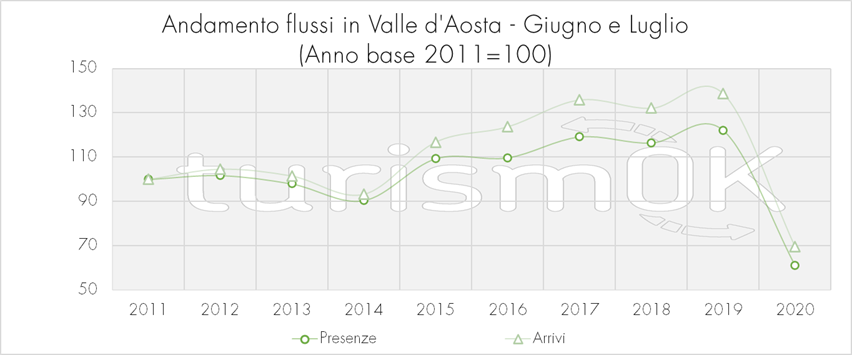ARRIVI E PRESENZE IN GIUGNO E LUGLIO 2020 IN VALLE D’AOSTA